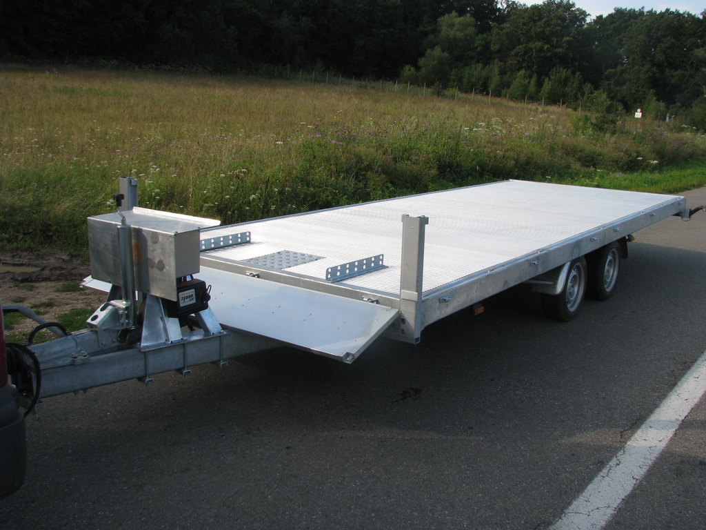 Aceste remorci sunt destinate în special transportului de autoturisme si microbuze. Prin folosirea unei podele intregi intre calele de rulare se pot transporta si autovehicule avariate.